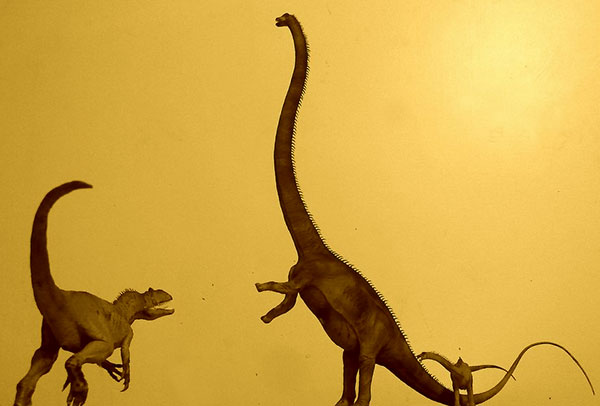 A big sauropod, such as Barosaurus, had one decisive weapon against even the largest theropods – sheer weight. Its 20-tonne body could easily crush the bones and such the air from the lungs of a 3-tonne Allosaurus. Barosaurus may have resorted to crushing attackers in extreme circumstances, such as to protect its young.