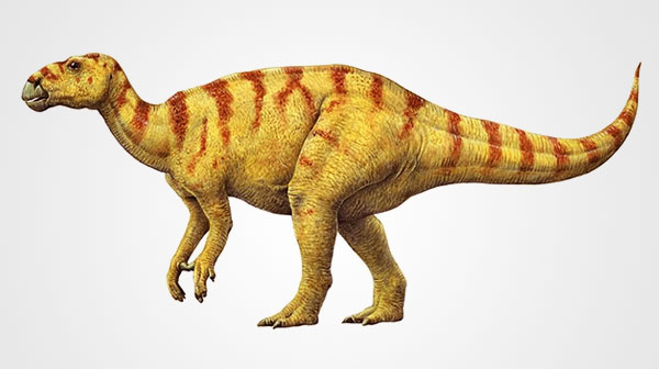 Iguanodon was a large herbivore without spines, plates, or claws. Its only defensive weapon was a single long spike on each thumb. Paleontologists believe this dinosaur may have jabbed at attacking theropods with the spike. Iguanodon had usually flexible hands, and was able to grasp food in its fingers.