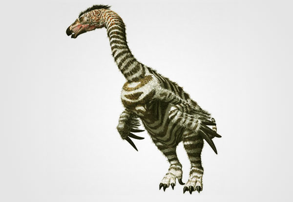 Therizinosaurus had three huge, lethal-looking claws on each hand. However, some experts think the claws were too blunt to be used as weapons. Instead, they may have been used for feeding – to pluck foliage from trees or to rip open the nests of termites. If so, how this dinosaur defended itself remains a mystery.