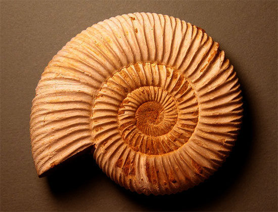 A fossil is the preserved remains of a plant or animal. These remains can be either hardened bones, shells, or other parts, or a preserved impression of the hard parts. One of the most common fossils is an ammonite – a shelled sea creature that lived at the same time as the dinosaurs.