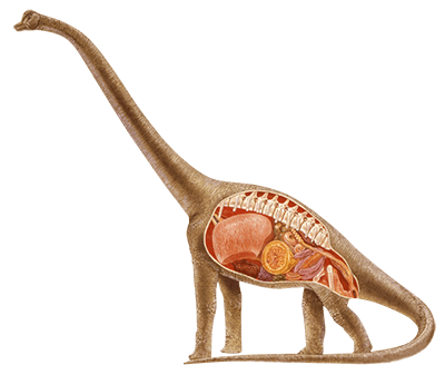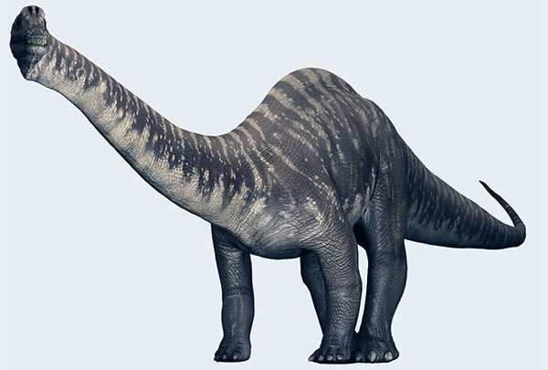 The most striking characteristic of the sauropods was their size, for they were the biggest animals to walk the Earth. Their body design did not vary as much as in other dinosaur groups – they all had large bodies and small heads, and most had very long necks and tails, like this Brachiosaurus. All the sauropods were herbivorous, maintaining their massive bodies with only plant matter. Like their enemies the theropods, the sauropods belonged to the lizard-hipped type of dinosaurs.