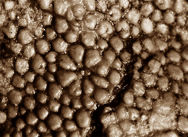 Sauropods had thick skin for protection against attackers. However, these skin textures would have varied between groups. A section of fossilized skin from a Saltasaurus, above, has been discovered, showing knobby skin inset with little bony plates. Other sauropods may have had smoother, more lizard-like skin. Some even had ridged spikes running along their backs.