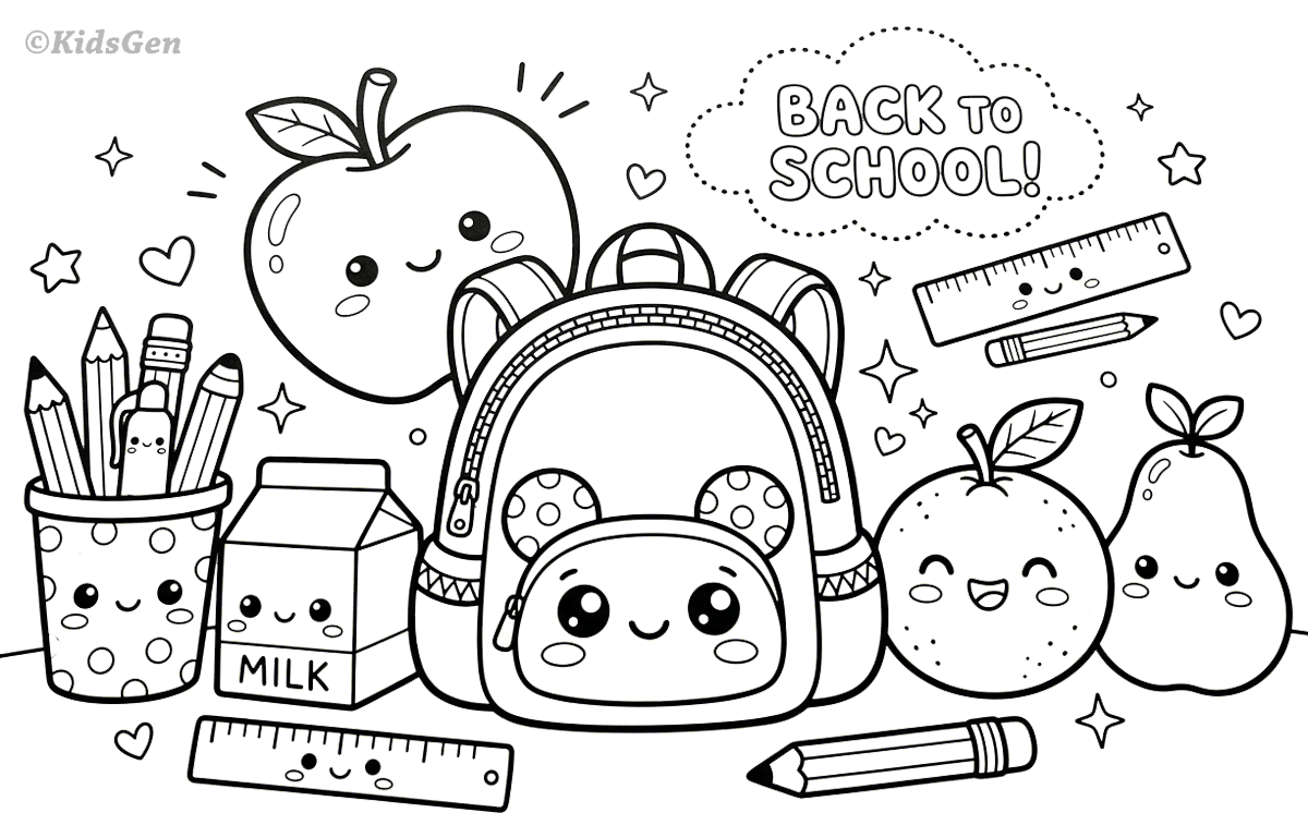 Back to school coloring pages are printable coloring images that feature school-related themes like classrooms, school buses, teachers, and students. These images to color help kids get excited about the new school year.