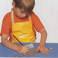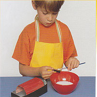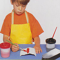 You will also need scissors, a ruler, black emulsion paint, white emulsion paint, pencil, red acrylic paint, paintbrushes, PVA glue, ½ inch wide white paper strips, some pens and some acrylic varnish.