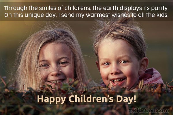 1. Through the smiles of childrens, the earth displays its purity. On this unique day, I send my warmest wishes to all the kids. Happy Children's Day!