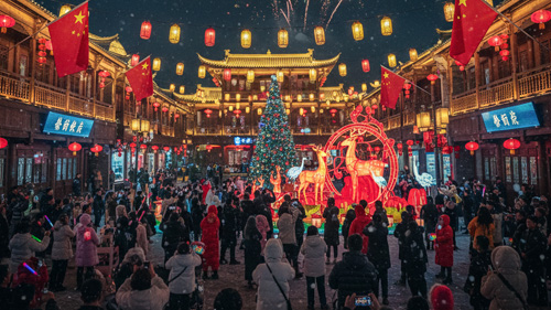 Christmas in China is a modern, growing celebration, especially in big cities with festive lights, decorated malls, and gift-giving. Blending Western customs with local culture, it offers a fun and lively holiday atmosphere.