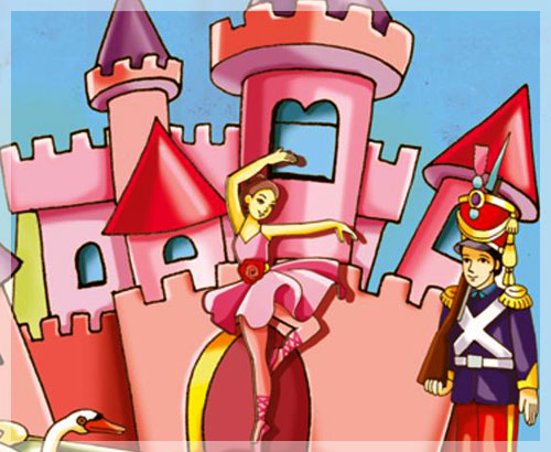 On the table with the soldiers were many other playthings, and one that no eye could miss was a marvelous castle of cardboard. It had little windows through which you could look right inside it. And in front of the castle were miniature trees around a little mirror supposed to represent a lake. The wax swans that swam on its surface were reflected in the mirror. All this was very pretty but prettiest of all was the little lady who stood in the open doorway of the castle. Though she was a paper doll, she wore a dress of the fluffiest gauze. A tiny blue ribbon went over her shoulder for a scarf, and in the middle of it shone a spangle that was as big as her face. The little lady held out both her arms, as a ballet dancer does, and one leg was lifted so high behind her that the tin soldier couldn't see it at all, and he supposed she must have only one leg, as he did.