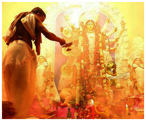 Considered as the sixth day from the new moon, Maha Shasthi marks the beginning of the staple Bengali festival, Durga Puja. It is the sole festival when people of Bengal all come together and dance with the melodious tunes of Dhak, a musical instrument, to welcome devi Durga with her four children to Her paternal house. Thus in to make this welcome indeed a grand one, many arrangements are made by the fellow Bengalis, the main amongst is the setting up of well decorated pandals wgere the idols are generally placed. Though arrangements start almost many months prior to the main festival but the actual mood of festivity is best highlighted from the evening of Maha Shasthi. Pandals starts getting crowded with all colourful souls. Everyone congregate on the pandal premise in order to participate in zeal and passion that is more to be disclosed in the coming four days. However the most visible site of this particular day is the inauguration of famous pandals which are generally inaugurated by some renowned artists, celebrities and ministers who invites various pandals.
