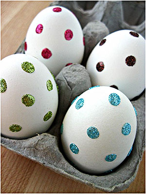 - Place a piece of paper under your egg, and sprinkle glitter (or kid-friendly colored sugar) all over it.