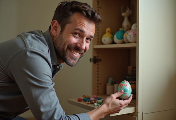 - Once their masterpieces are complete, they hide the decorated eggs around the house.