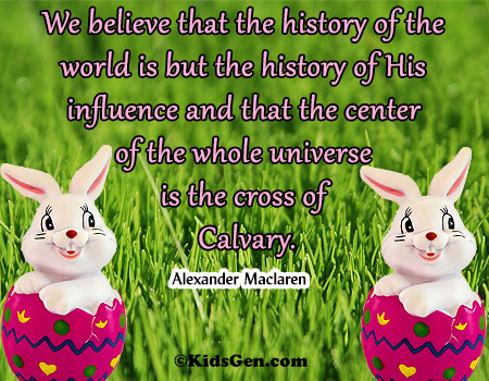 - "We believe that the history of the world is but the history of His influence and that the center of the whole universe is the cross of Calvary."