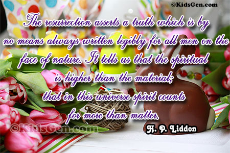 - "The resurrection asserts a truth which is by no means always written legibly for all men on the face of nature. It tells us that the spiritual is higher than the material; that in this universe spirit counts for more than matter."