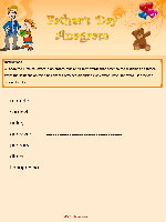 Get your hands on these exciting Father's Day anagram puzzles. Just print out any of the templates given below and unscramble the jumbled words to form words that describe the qualities of a dad. Most of you, especially the small ones would find it comfortable to solve the easy anagram as it comes with word clues; the bigger ones among you should take the challenge to crack the regular anagram that comes with no hints. So pick any anagram you like, print out its template and start solving! Have a fun time cracking our Father's Day Anagrams!