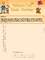With Father's Day almost here again, it is about time you gear up for the celebrations. Celebrate Father's Day the virtual way with our fantastic code cracker puzzle themed to the occassion. This cool Father's Day Code Cracker puzzle is just what you need to try and make your Father's day festivities bigger and better. If you like solving this cool Father's Day Code Cracker puzzle game, please click here to send this page to your friends and share the fun. Have a grand time!