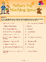 Celebrate Father's Day the virtual way! Solve our awesome Father's Day Matching Game activity. The puzzle has two sets of phrases that you have to match correctly. For each correct match, you gain a point. So you get ten points if you can match all the phrases perfectly well. Have fun solving this fantastic Father's Day Matching Game Puzzle!