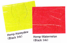 These papers are made in Japan and have strands of manila hemp scattered over the surface of the paper. The hemp catches the light and makes the paper look like it has silk threads in it. Notice that the fibers are only on one side of the paper. I love the combination of these two colors.