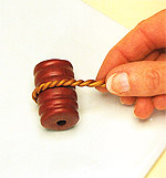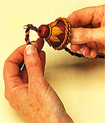 Form a 5/8" (15mm) ball of copper clay and press this onto the top of the tassel. It will flatten slightly as you press to make an attractive finial.