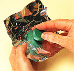 Roll out a sheet of copper clay, about 1/16" (1.5cm) thick, rolling and folding it several times so that the sheen on the surface is smooth and continuous. Cut out a rough shape, about 6" (15cm) square, and warp this around the domed part of one of the formers. Trim the clay to size so that the ends meet neatly and butt together.