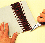 Cut through the yarn along the bottom edge with sharp scissors - this releases the yarn from the card and gives you a hank of 12" (30cm) lengths of yarn. Repeat for the second tassel skirt.