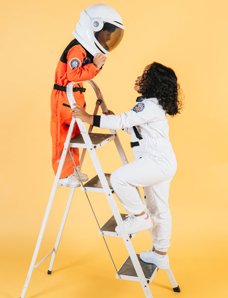 Let your little one explore the cosmos as an astronaut. Dress them in a white or silver jumpsuit and attach NASA logos and patches. Create a jetpack using cardboard and silver foil, and add a clear plastic helmet for an out-of-this-world effect.
