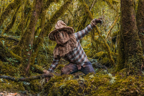 Create a scarecrow costume with a twist. Dress your child in a flannel shirt, overalls, and a floppy hat. Use face paint to add some friendly scarecrow features like stitched lips and rosy cheeks. Stuff the overalls with straw to complete the look.