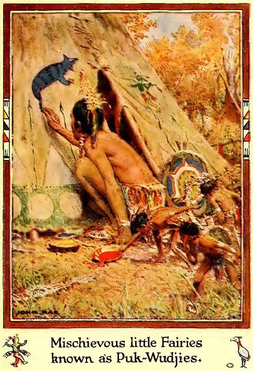 If anything more were needed to convince those doubters who did not believe in fairies, the proof was quickly supplied by fishermen and hunters who were victims of their tricks. The Puk-Wudjies never really harmed anyone, but they were up to many kinds of mischief. Sometimes a hunter, picking up his cap in the morning, would find the feathers plucked out; sometimes a fisherman, missing his paddle, would discover it at last in a tree. When such things happened it was perfectly plain that Puk-Wudjies had been up to their pranks, and few persons were still stupid enough to believe it could be anything else.