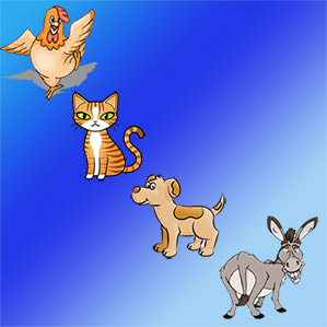 "Hee-haw, hee-haw!" roared the ass; "bow-wow!" barked the dog; "meaw-meaw!" cried the cat; "cock-a-doodle-doo!" crowed the cock.