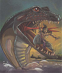 The boys thought it was a cave and led their calves right inside. Curious, Krishna followed them, too. The moment they were inside, the demon snapped his jaws, suffocating the boys and animals.