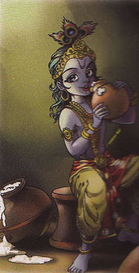 Yashoda would hear complaints every day. "Your son stole my butter again!" And she'd scold Krishna, who just looked up with innocent eyes-and a butter-smeared face.