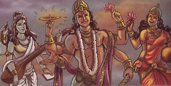 Vishnu intervened. He explained that with knowledge he can read and write, but without wealth he cannot buy the tools like books and pan to gain