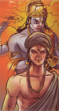 to Vishnu day and night. Vishnu was pleased with his devotion and decided