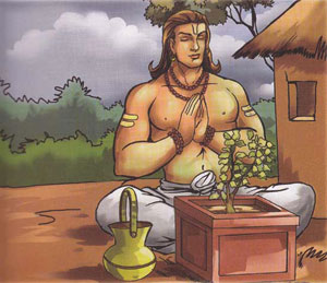 Narada instructed the hunter to give up hunting and set up a small hut