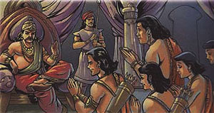 and Arjuna - were the sons of Pandu's first wife, Kunti, and the youngest Pandavas- Nakula and Sahadeva - were the sons of Madri, Pandu's second wife. King Pandu and Madri had died, so Kunti brought them up. All the five brothers had great qualities. They were brave and intelligent. They had learnt many arts and mastered weaponry. Yudhisthira, the eldest, was known for his truthfulness and fond of eating. Arjuna was a great archer and was a favourite with his elders. There was a lot of love and brotherhood among them.