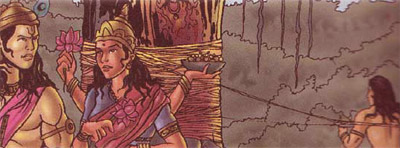 laziness that he asked her to leave. Sadly, Daridra went to Laxmi
