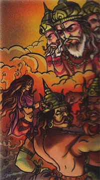 woman so beautiful that nobody could take their eyes off her. Accordingly, Vishwakarma created the exquistly beautiful Tilottama, seeing whom even Shiva could not remove his gaze. Brahma then instructed her to meet the demons. Tilottama appeared before the demons and seeing her, both brothers fell for her charms. They both wanted to marry her and thus, a fierce enmity followed. They took up arms against each other and died fighting. Unfortunately, Tilottama's charms kept captivating one and all. So Brahma gave curse that nobody would be able to cast his eyes on her for too long.