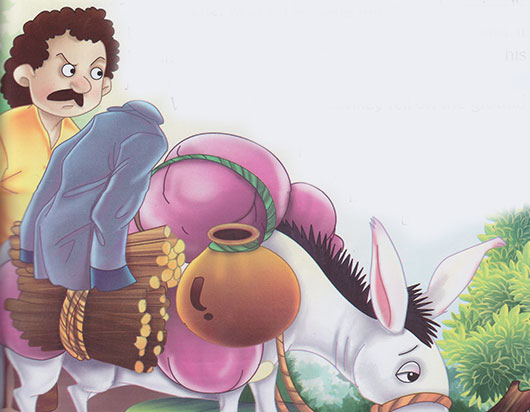 A gardener used to go to the market every week in the neighbouring town along with his donkey. He was so cruel that he loaded the donkey with a lot of load that only his head could be seen.