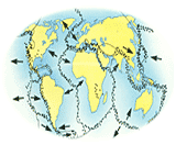 The continents of the Americas, Europe, and Africa sit on plates that are moving in opposite directions. Use the continent cards you have made in the above project to see how they drift apart. Fold a large sheet of card in half, and attach paper clips along the fold. Drape it over two boxes. Stick the Americas on one sheet, and Europe and Africa on the other. Push upward on the fold, and see the continents move apart.