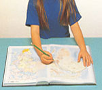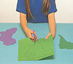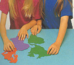 Stick the tracing paper on to different colored sheets of card. Then carefully cut around the outlines of the continents you have drawn from the atlas.