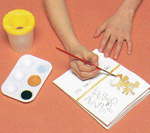 YOU WILL NEEDThin card, ruler, pencil, scissors, white acrylic paint, large paintbrush, water pot, eraser, tracing paper, acrylic paints, palette, selection of paintbrushes.