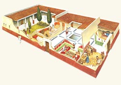 Only the wealthiest Romans could afford a private house. The front door door opened onto a short passage leading to the 'atrium', a central court or entrance hall. Front rooms on either side of the passage were usually bedrooms. Sometimes, though, they were used as workshops or shops and had shutters that opened out to the street.