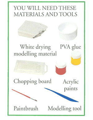 Cut three pieces of drying modelling material and roll each into a snake. Make each one as long as possible but not too thin. Tightly coil one of the snakes into a flat circle. This will be the base of the pot. If there are any gaps, gently press them together. Bind the joins with the modelling tool.
