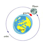 Every 12 hours or so, the seawater rises, then falls back again. These rises and falls are called the tides. When the water is rising, we say the tide is flowing. When it is falling, we say the tide is ebbing. The movement of the ocean waters is caused by the Moon and by the Earth spinning. Gravity pulls the Moon and Earth together. As the Earth turns, the Moon pulls at the ocean water directly beneath it, causing the water to rise. A similar rise in sea level occurs on the opposite side of the Earth, where the water bulges out as a result of the Earth spinning. At these places, there is a high tide. Some six hours later, The Earth has turned 90 degrees. The sea then falls to its lowest point and there is a low tide.