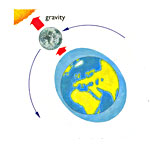 The tidal bulge: strong glue, one 8in length and two 16in lengths of thin string, plastic ball to represent the world, plastic bowl, hand drill, water.