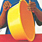 Place the bowl on a firm, flat surface, then half fill it with water. Place the ball gently in the water so that it floats in the middle of the bowl, as shown in the picture.