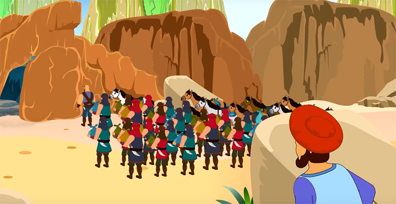 The story takes place in Baghdad during the Abbasid era. Ali Baba and his elder brother Cassim are the sons of a merchant. After the death of their father, one day Ali Baba is at work collecting and cutting firewood in the forest, and he happens to overhear a group of forty thieves visiting their treasure store.
