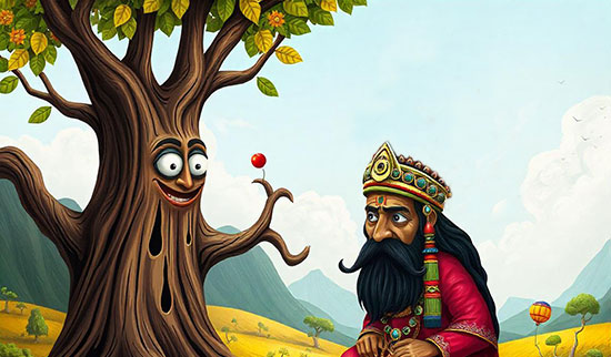 "When he attained to manhood, he, too, worshipped Kalpabriksh assiduously; whereupon Kalpabriksh was pleased, and said to him, 'Ask whatsoever thou desirest, I will give it to thee.' On this, Jimut-bahan said, 'If you are pleased with me, take away all poverty from my subjects, and let all those who dwell in my dominions become equal in point of possessions and riches.' When Kalpabriksh granted the boon, all became so well off by the possession of wealth, that no one would obey the order of any person, and no one would do work for anyone."