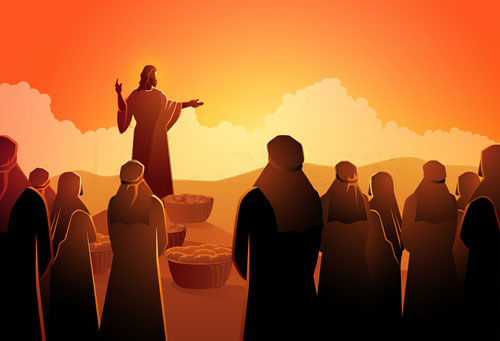 Then Jesus bade the people sit down on the ground around Him, and He took the seven loaves and the fishes and offered thanks to God; afterwards, He broke the loaves into pieces as He had done before and gave them, with the fishes, to His disciples, and the disciples distributed them among the people. As they gave out the food it continued to increase wonderfully, so that all the people were fed; and even after that there was food enough left so that they took up seven baskets full, although about four thousand men, with many women and children, had eaten.