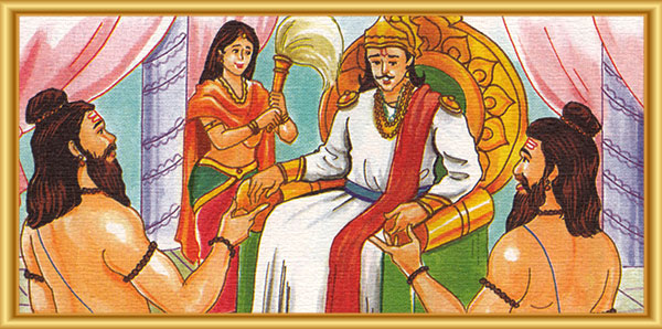 At some point, two holy people went to the court of Vikramaditya and stated, "Lord, there is a question between us in regards to an issue. If you don't mind help us."
