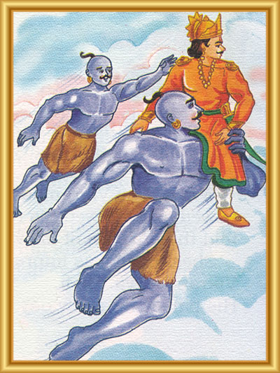 The betaals took off taking the lord on their shoulders. They left him at Ujjain and left.