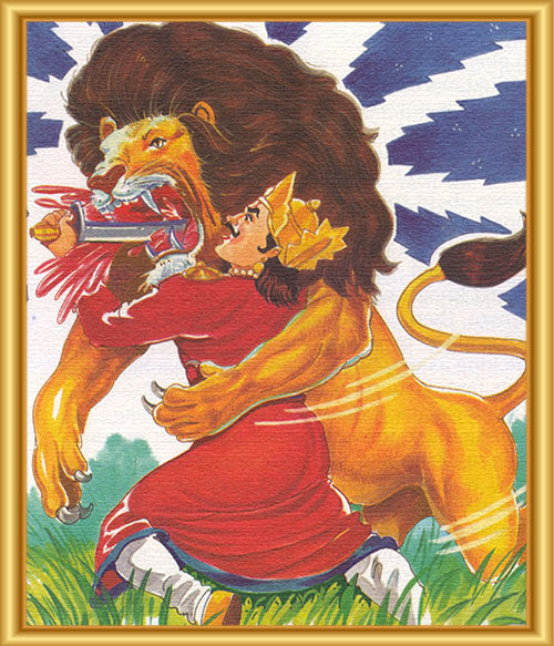 "Half piece of that herb is blue and another half is yellow. It is as a horny bramble. On the off chance that somebody contacts its leaves, they hang," answered the regal doctor. The ruler called his betaals and requested them to take him to the mountains of Neel Ratnagiri. Before long they achieved the valley. Lord Vikramaditya went looking for khwang herb. The valley was dull and stunning. There were perilous creatures and harmful creepy crawlies all over. All of a sudden, a lion thundered and assaulted the ruler. Be that as it may, King Vikramaditya before long slaughtered the lion. On moving further, he saw numerous snakes. The lord pelted stones at them and they wriggled away. Lord Vikramaditya then advanced, when all of a sudden he heard a murmuring sound from behind. When he pivoted, he saw a colossal dark snake. The snake ate up the ruler. Indeed, even in the wake of achieving the stomach of the snake, the lord did not lose his valor. He took out his sword and cut open the stomach of the snake and turned out. Night moved close and he felt depleted. In obscurity, it was difficult to move in the valley. Along these lines, the ruler scaled a tree and went through the night there. In the first part of the day, he woke up and began looking for the khwang herb. He looked through the entire day yet futile.